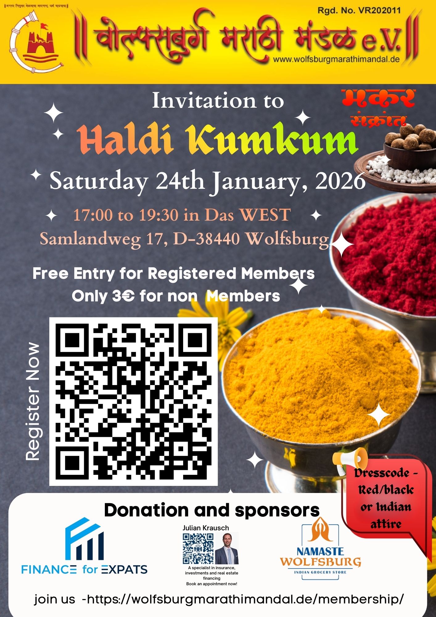 On the occasion of Makar Sankranti, Wolfsburg Marathi Mandal e.V. is happy to announce yet another event: Haldi Kumkum Ceremony. We request the ladies in the group to register on the given link and join us to celebrate and preserve this tradition.